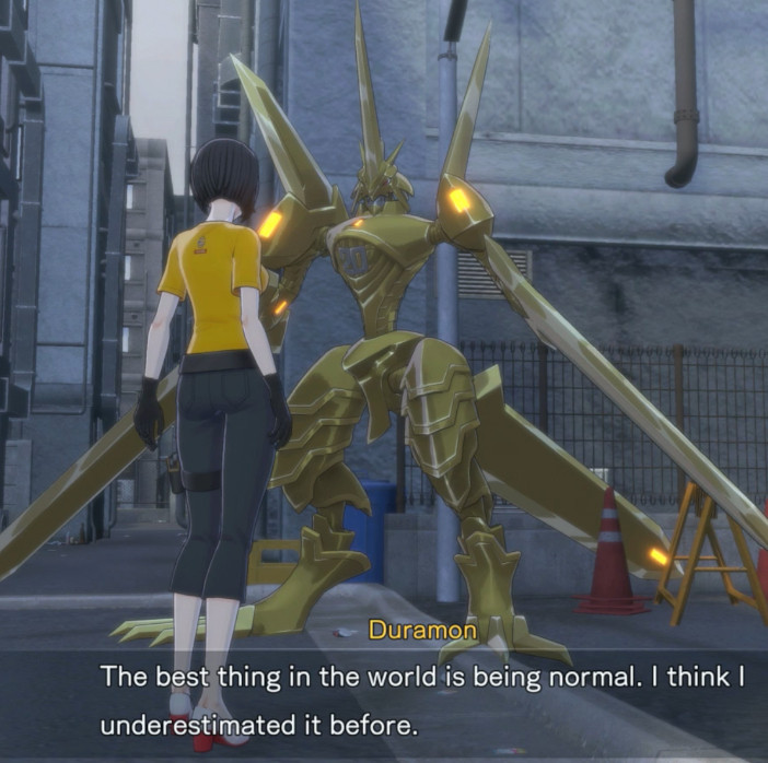 The story’s pacing is a mess, and a lot of characters drift in and out of the plot without much fanfare. For example, Inori’s father is initially presented as an important figure when you meet him alongside her at the start of the game. After you go to the Digital World, he’s not mentioned again until the last bit of the game, and even then he’s spoken of more than actually interacted with. Most of the major events take place in the last fourth of the game, with the beginning doing a lot of setup for events that don’t get paid off in a satisfying way. While it makes sense that you’d be thinking less about the human cast while in the world of Digimon, it makes it far more difficult to give a damn about anyone you’re catching up with once you’re back on Earth. At the very least, most of the incidental dialogue is very funny, as seen in many of the screenshots I used for the review.