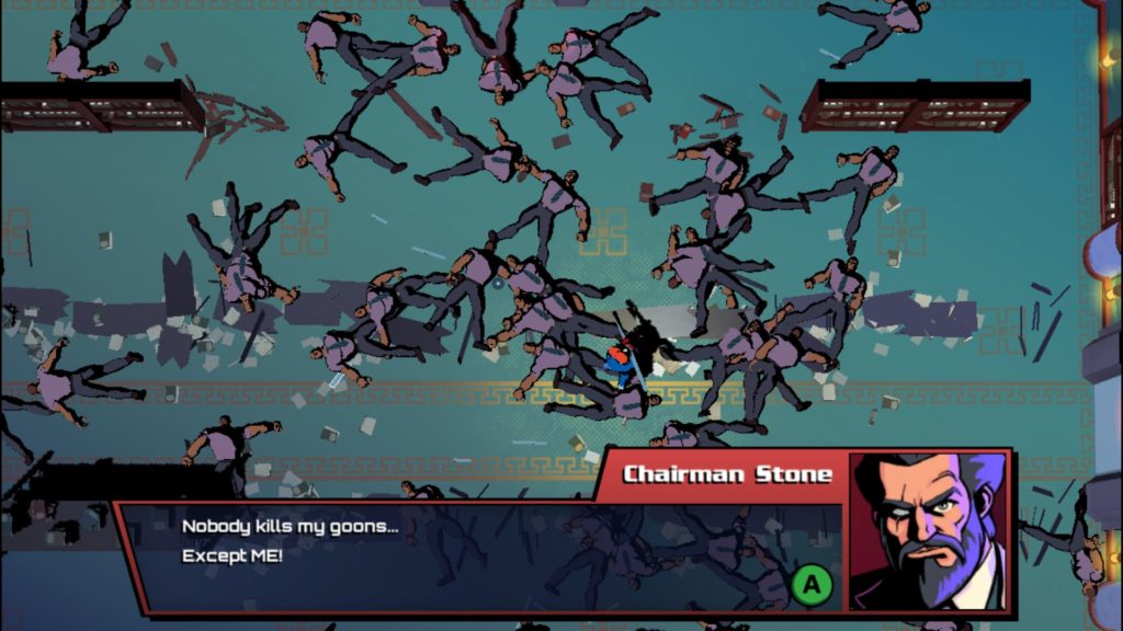 One thing I try to avoid when describing games is saying “It’s really good, but.” That’s something I’ve had to do a lot with Mr. Shifty. Directly inspired by the Hotline Miami series, Mr. Shifty manages to take the fast, frenetic style of combat of those games and crafts it into an experience uniquely its own. It mixes the satisfying feeling of clearing out rooms full of enemies with a light-hearted tone and sense of humor. Without a doubt, when it’s banging on all cylinders, Mr. Shifty hits, if not exceeds, the same high points you’d find in Hotline Miami. At its best moments, Mr. Shifty is one of the funnest and funniest games that I’ve played in recent memory. At its worst, it’s an absolutely dreadful game that I wanted shot out of a cannon through one sun, into a different sun, and then finally settling on a planet made entirely of shit.